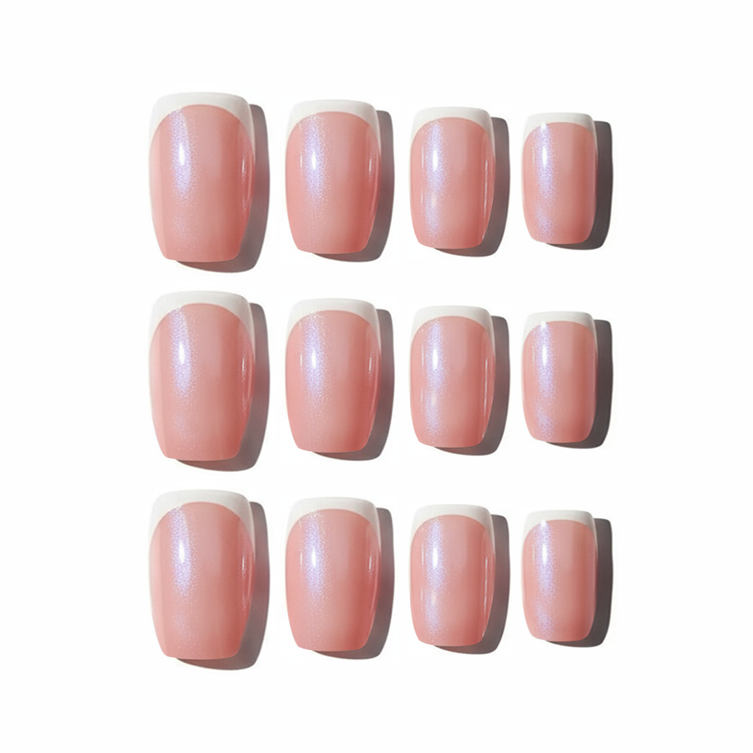 This set features an elegant French base, softly elevated with a pearly chrome blended over the top. The result is subtle shine, silky dimension, and just enough glow to turn heads without trying too hard. Refined, modern, and effortlessly luxe—proof that classy doesn’t have to be boring.