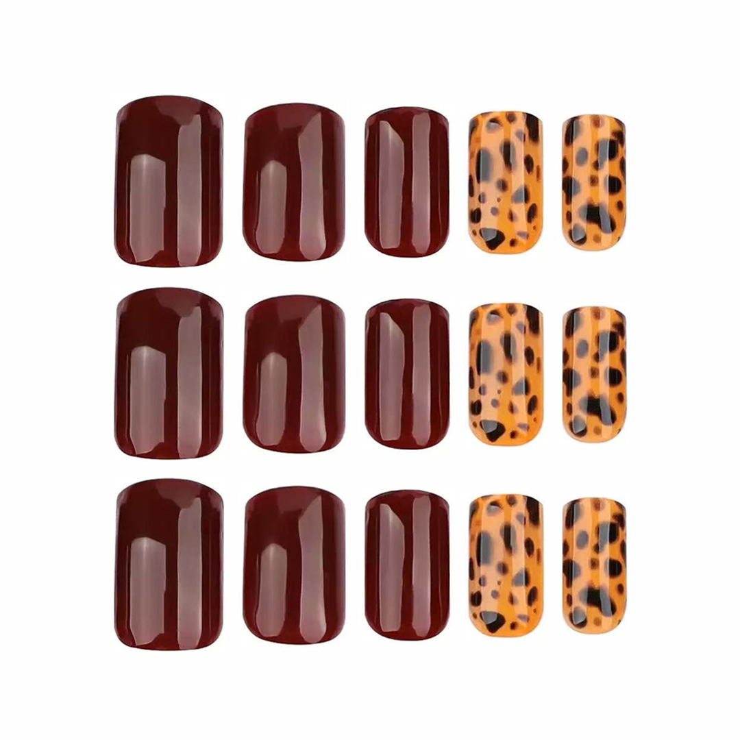 a chic mix of rich wine red and the iconic tortoise-shell nail art… serving timeless elegance with a fashion-girl twist.