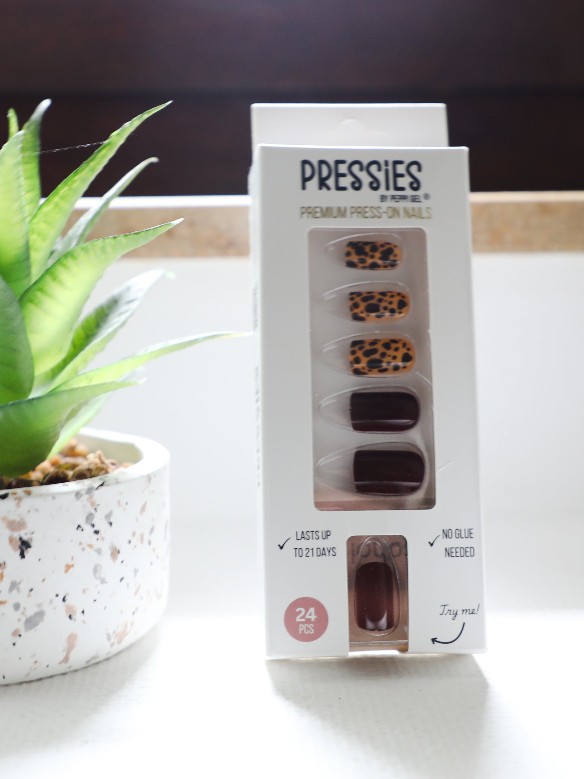 - Press: Peel and firmly press the No-Mess Glue Tabs down for 10 seconds each, and then peel the top sticker and apply your Pressies on top! Press and hold tight for 10 seconds per nail.